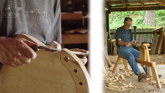 Synopsis: Shaping long, flat surfaces, concave cuts, face grain, end grain—information technology'southward all easier with a well-sharpened drawknife. Windsor chair master Curtis Buchanan gives a tutorial on this valuable paw tool, from the dissimilar types of drawknives, to sharpening, to whether you demand a bevel-up or bevel-down version. He too demonstrates how to hold the tool and how to use it to brand complex shapes, smooth surfaces, facets, scooped surfaces, and more than.